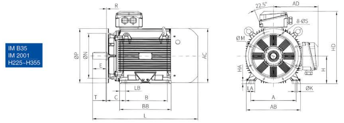 | 23 | 315S | 4, 6, 8 | 508 | 406 | 216 | 80 | 170 | 22 | 71 | 315 | 28 | 600 | 550 | 660 | 0±4 | 24 | 6 | 115 | 46 | 628 | 540 | 40 | 631 | 507 | 822 | 1220 |