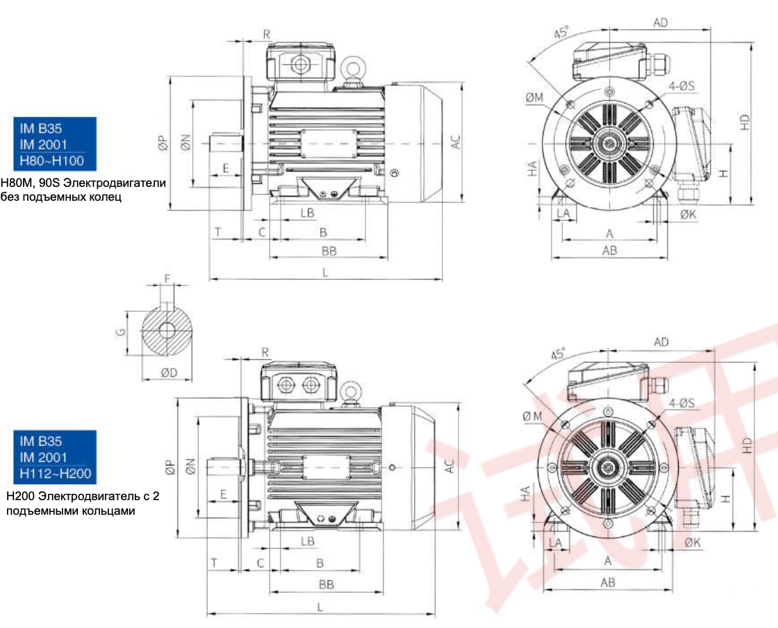 B35, V1 (комбинированный)Электродвигатели могут быть изготовлены по индивидуальным требованиям заказчика в зависимости от условий эксплуатации.