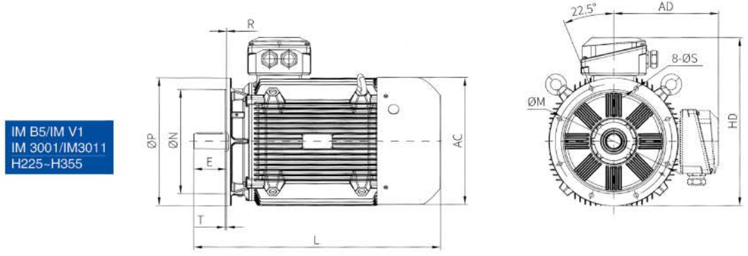 | 15 | 225M | 4, 6, 8 | 60 | 140 | 18 | 53 | 400 | 350 | 450 | 0±4 | 18,5 | 5 | 442 | 345 | 580 | 925 |