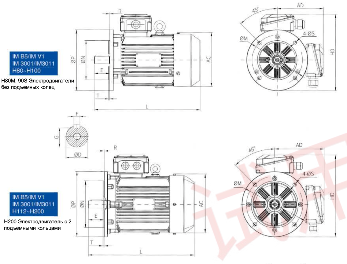B35, V1 (комбинированный)Электродвигатели могут быть изготовлены по индивидуальным требованиям заказчика в зависимости от условий эксплуатации.